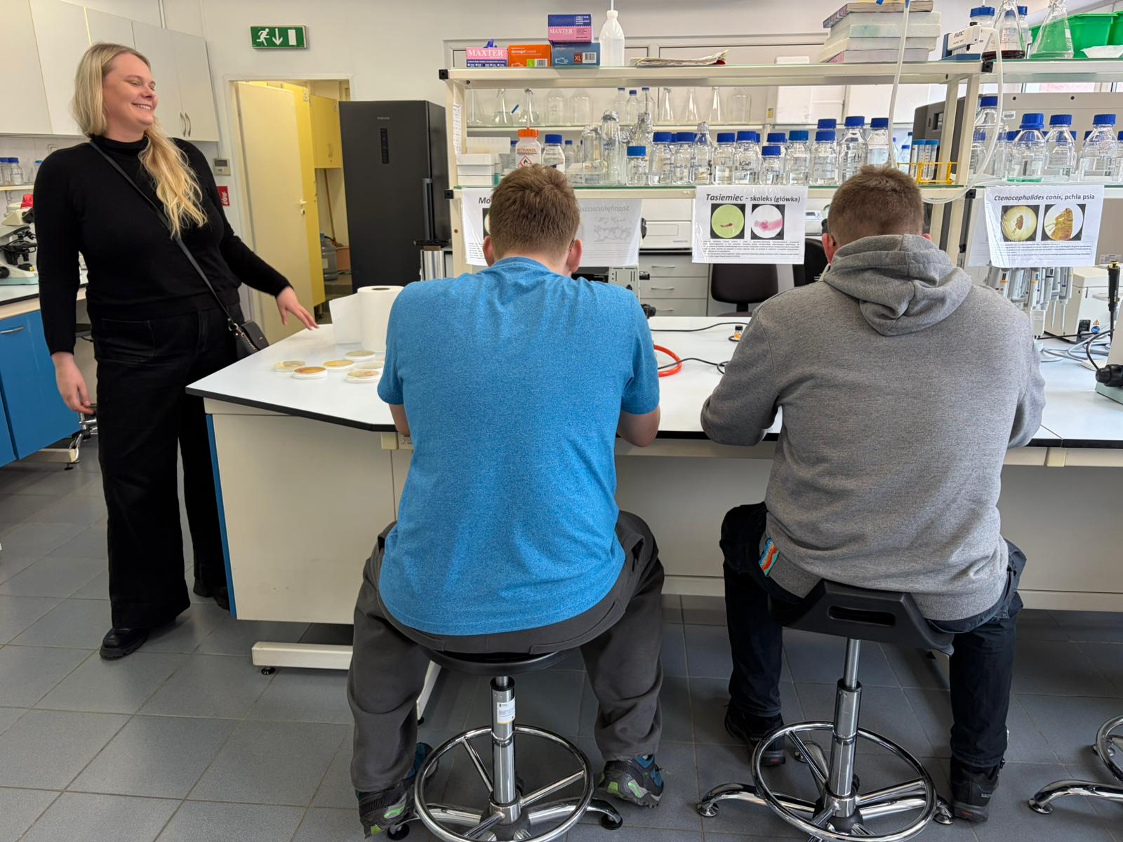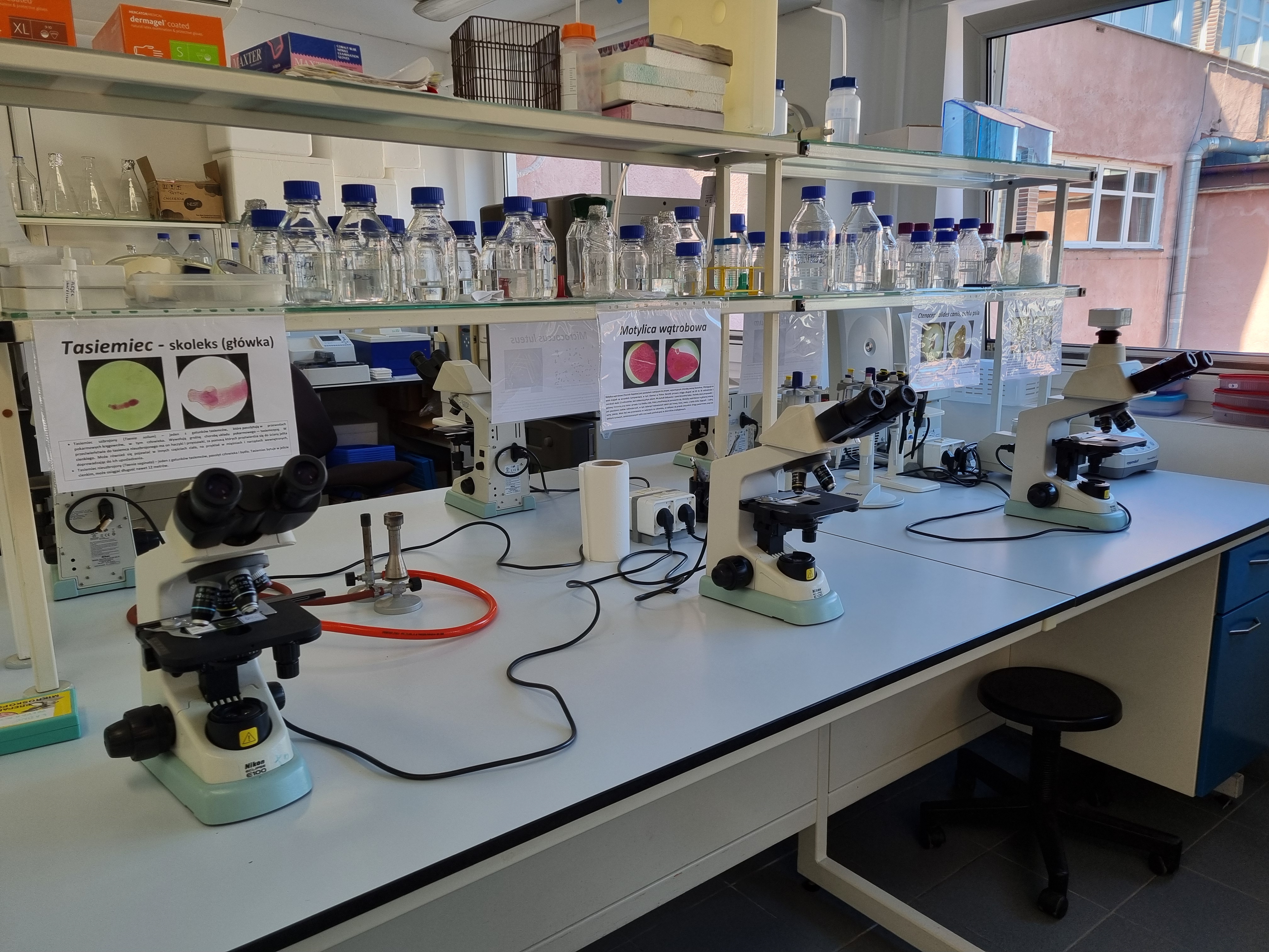 Kolejnym wydarzeniem były warsztaty pt. „Mikroświat wokół nas – odkrywamy świat niewidoczny gołym okiem!”, w których uczniowie mogli obejrzeć różnorodne preparaty mikroskopowe. Uczestnicy poznali m.in. bakterie barwione metodą Grama, preparaty pasożytów oraz grzybów, dzięki czemu mogli samodzielnie odkryć, jak różnorodny i skomplikowany jest mikroświat, który otacza nas na co dzień.