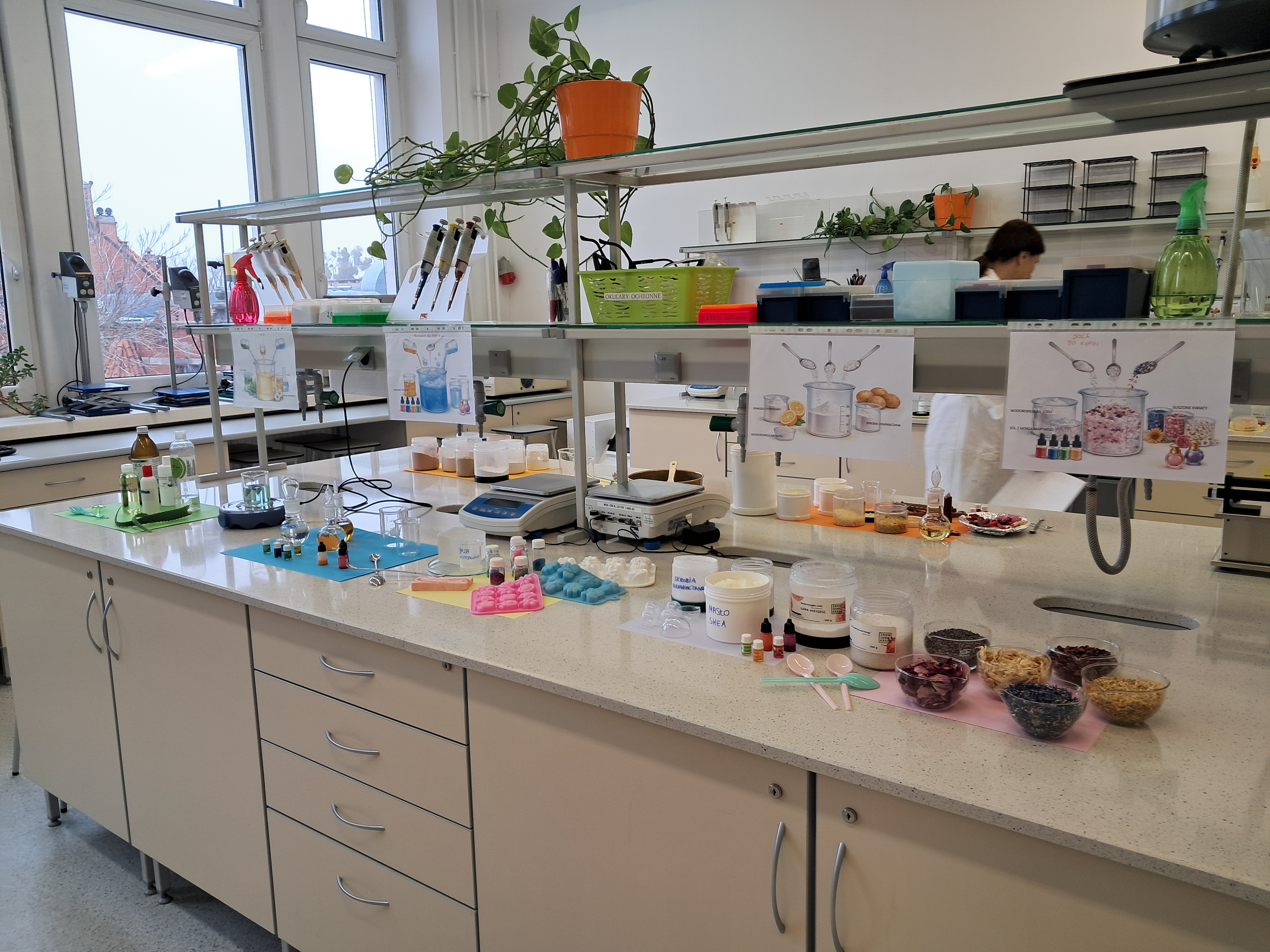 W programie znalazła się prezentacja laboratorium technologii kosmetyków, podczas której uczestnicy mogli bliżej poznać surowce pochodzenia naturalnego oraz inne składniki znajdujące się w produktach kosmetycznych stosowanych do mycia ciała (szampony, sole do kąpieli), produktach do pielęgnacji twarzy na przykładzie toniku, przykładowych produktach z segmentu kosmetyki kolorowej (pomadka, puder) oraz kremów i peelingów. Omówiona została również technologia otrzymywania każdego produktu. Program zakończył się prezentacją stanowiska do badania przenikania składników kosmetyków przez skórę, co pozwoliło uczestnikom spojrzeć na kosmetykę z perspektywy naukowca.