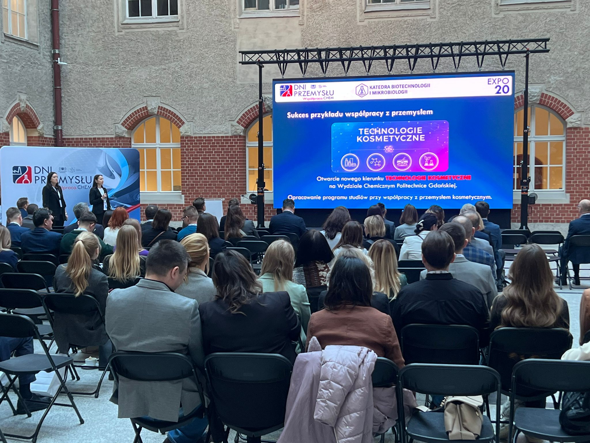 Pracownicy Katedry Biotechnologii i Mikrobiologii aktywnie uczestniczyli w pierwszej edycji Dni Przemysłu Wydziału Chemicznego Politechniki Gdańskiej, która odbyła się 18.02.2026 r. na terenie Politechniki Gdańskiej, prezentując potencjał naukowo-badawczy Katedry w trzech strefach wydarzenia. W Strefie „Stage” Katedrę zaprezentowały dr inż. Martyna Mroczyńska-Szeląg (nasz Koordynator ds. Współpracy i Rozwoju) i dr hab. inż. Patrycja Szumała, podkreślając główne obszary badań, specjalizacje oraz kierunki rozwoju. W Strefie „Expo” ofertę naszej Katedry prezentowali pracownicy: dr hab. inż. Rafał Piątek, dr hab. Beata Zalewska-Piątek, mgr inż. Michalina Nagórka, dr hab. inż. Marta Wanarska, dr hab. inż. Hubert Cieśliński, dr hab. inż. Anna Stanisławska-Sachadyn oraz dr inż. Aneta Pacyna-Kuchta, umożliwiając bezpośrednie rozmowy z naukowcami i prezentację oferty badawczej oraz aparaturowej. Udział ten pozwolił na nawiązanie kontaktów z przedstawicielami przedsiębiorstw zainteresowanymi innowacjami w branży kosmetycznej, biotechnologii i mikrobiologii, otwierając perspektywy dalszej współpracy.