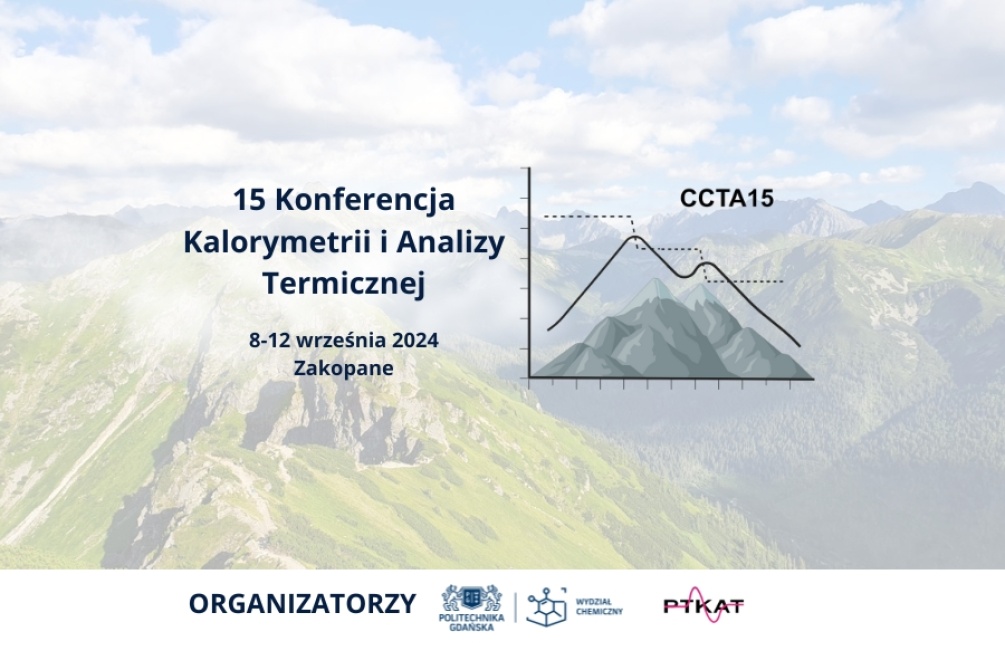 mamy przyjemność zaprosić Państwa do udziału w 15th Conference on Calorimetry and Thermal Analysis (CCTA15), która odbędzie się w dniach 8-12 września 2024 r. w Zakopanem. Konferencja i zakwaterowanie odbędą się w Ośrodku Konferencyjno-Wypoczynkowym „Hyrny”. Wydarzenie jest organizowane wspólnie przez Wydział Chemiczny Politechniki Gdańskiej, Polskie Towarzystwo Kalorymetrii i Analizy Termicznej (PTKAT) oraz Towarzystwo Naukowe im. Stanisława Staszica.
